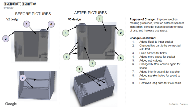 Summary: Worked with the guidance of a Google Product Design Engineer on the design and development of a technical product.